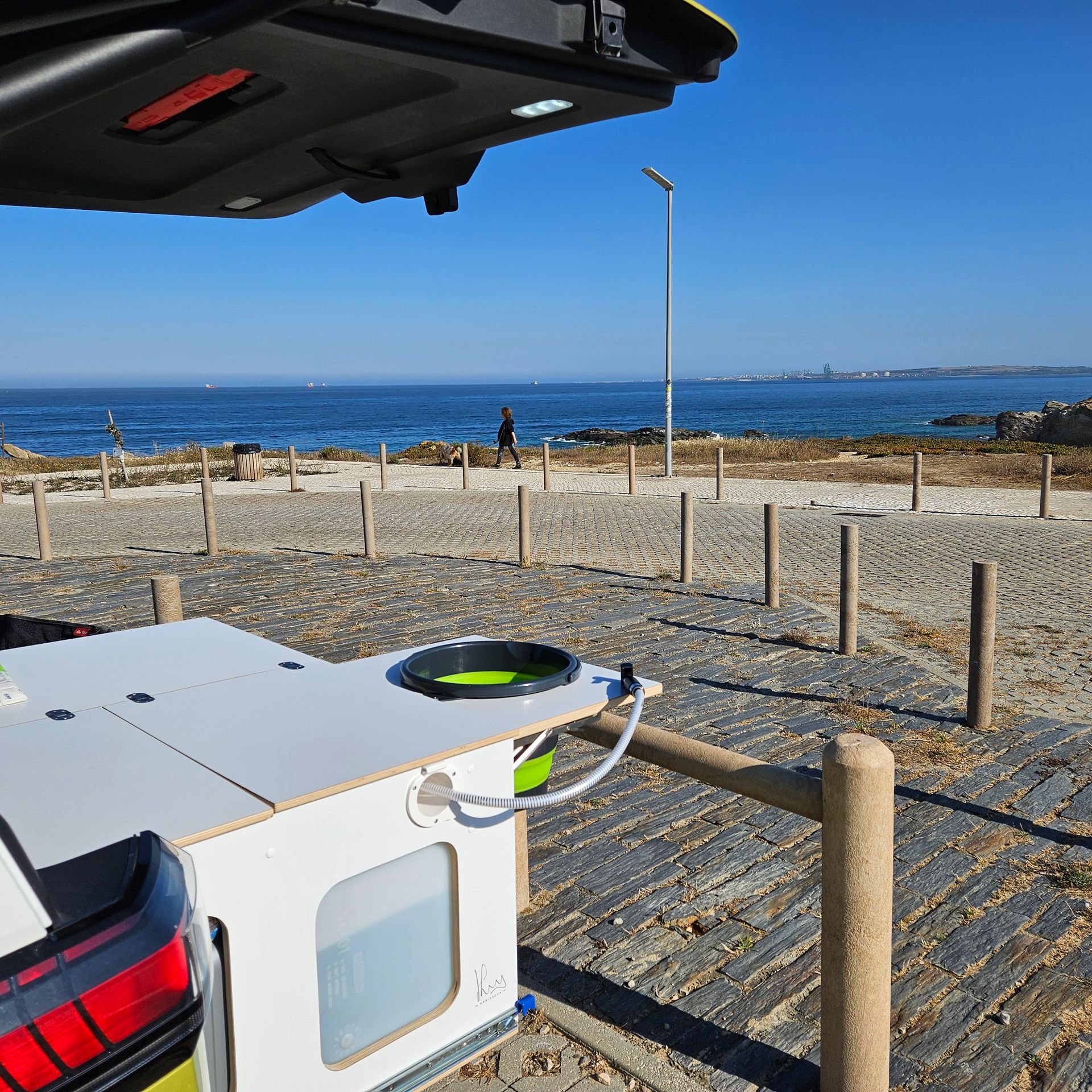 Sala Campismo fechada para poder colocar na traseira da ID-BUZZ dando conforno nos dias mais ventosos.